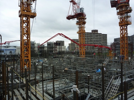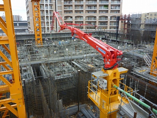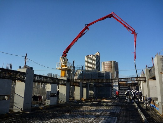 超高層の集合住宅では梁・床のコンクリート配合違いの打設分けなどに対し、時間短縮が可能により打継ぎの問題も解消されます。