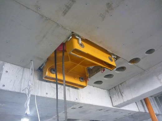 S造やSRC造などで打設面頭上に鉄骨などの障害物がある場合