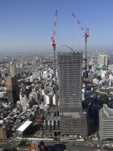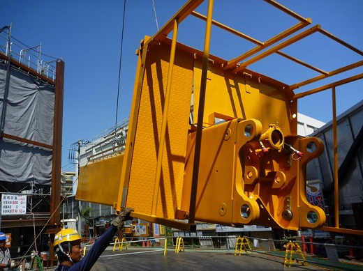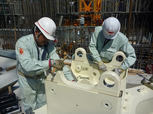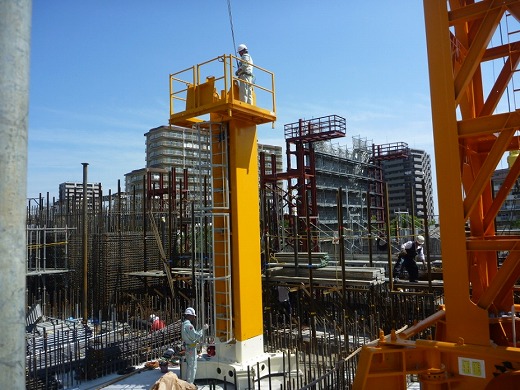 クライミングデバイスによりタワークレーンを使わず自力でクライミング可能。