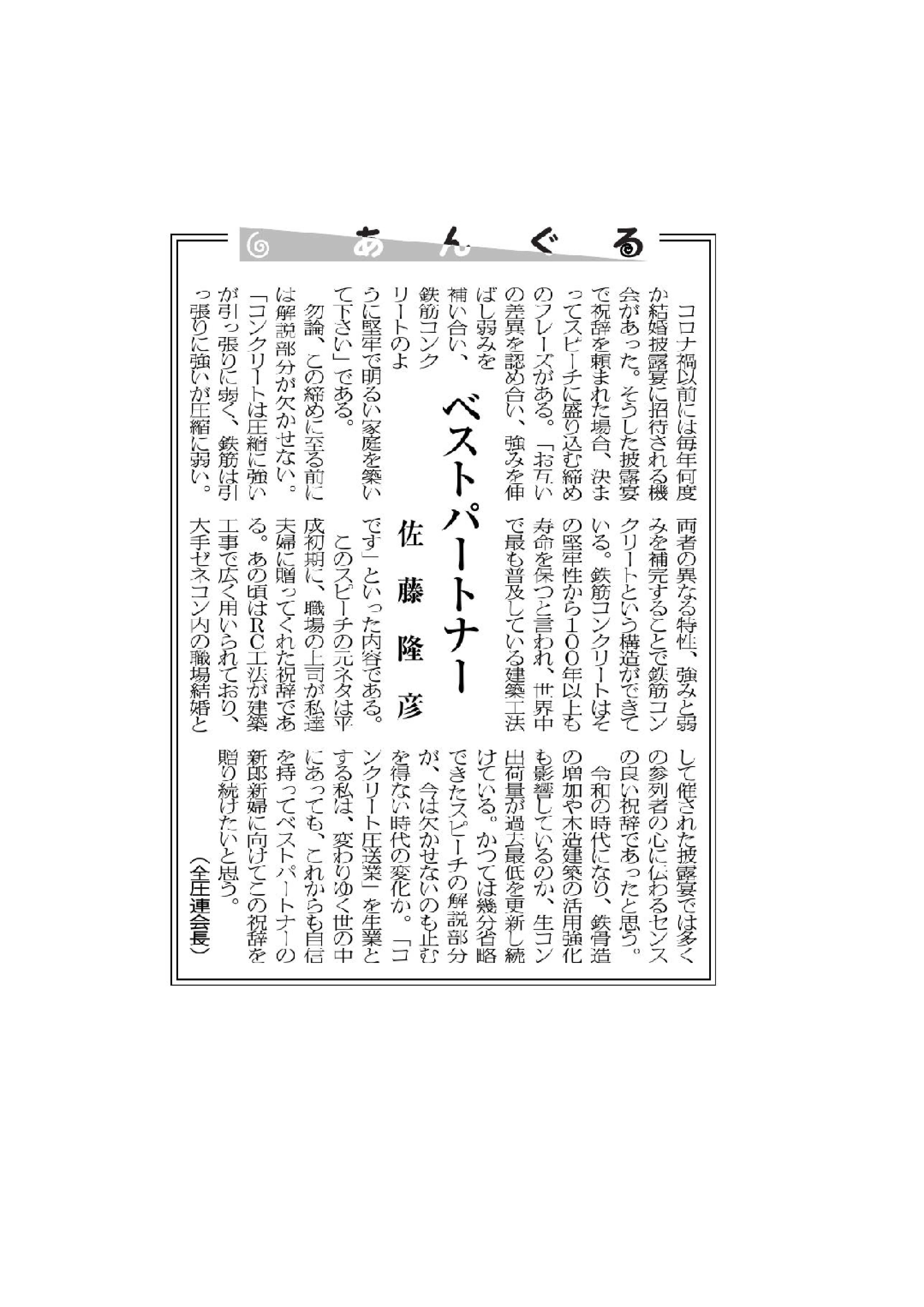 ベストパートナー ーセメント新聞掲載ー